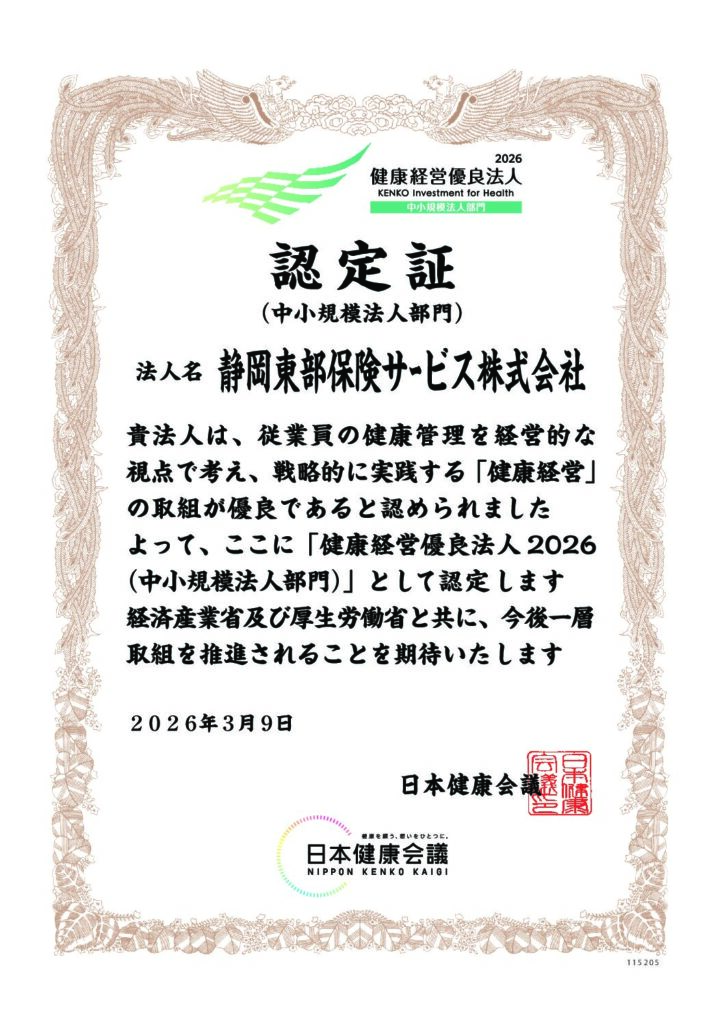 2026年3月9日付けで、経済産業省から「健康経営優良法人2026(中小規模法人部門)」の認定をいただきました。